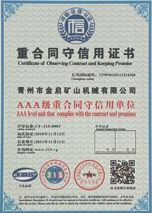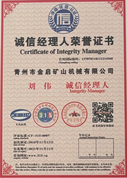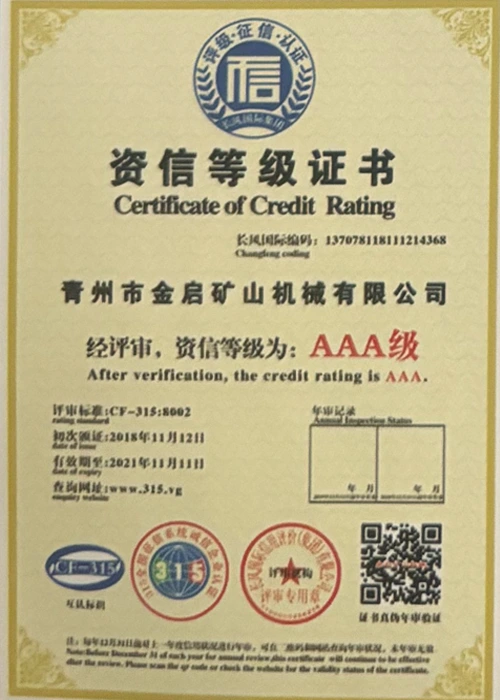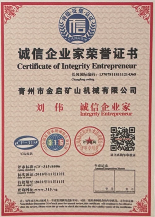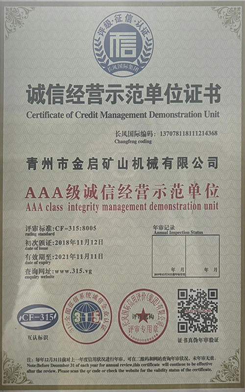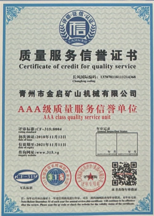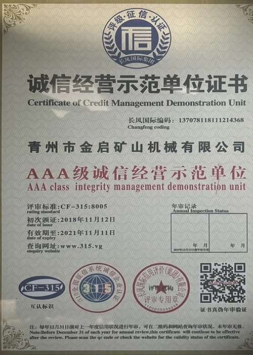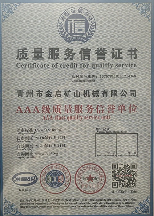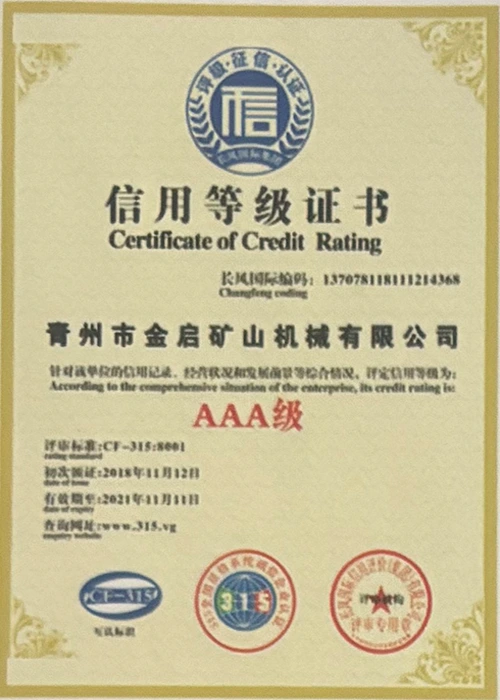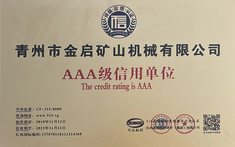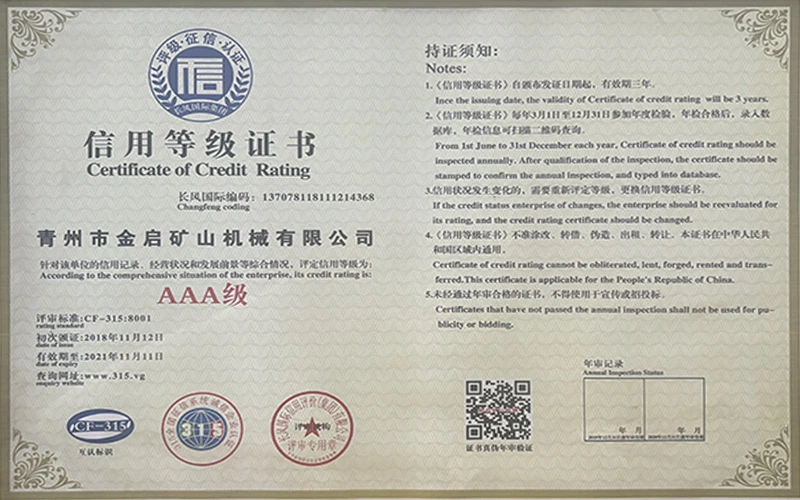 Արդյունաբերության մեջ երկար տարիների խորը փորձով, հենվելով որակի խիստ հսկողության և շարունակական տեխնոլոգիական նորարարությունների վրա, ընկերությունը ձեռք է բերել մի շարք հեղինակավոր որակավորումներ, հավաստագրեր և արտոնագրեր, այդ թվում՝ ISO որակի կառավարման համակարգի սերտիֆիկացում, հանքարդյունաբերության արտադրանքի անվտանգության սերտիֆիկացում, ինչպես նաև բազմաթիվ գյուտերի արտոնագրեր և օգտակար մոդելի արտոնագրեր, սարքավորումների կառուցվածքի օպտիմիզացման և էներգաարդյունավետության տեխնիկական մոդելի արտոնագրեր: արտադրության երաշխիք.