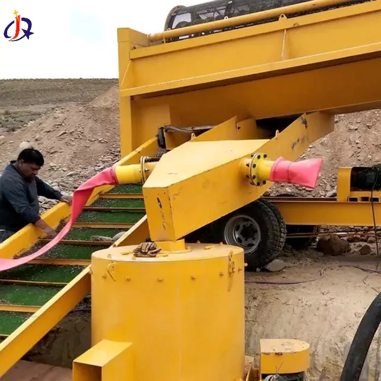 Ալյուվիալ ոսկու որոնողական մեքենան ինտեգրված, շարժական մասնագիտացված սարք է, որը նախատեսված է գետերի ջրանցքներում, գետափնյա լողափերում, տեռասներում և ալյուվիալ հանքարդյունաբերության այլ սցենարներում տեղաբաշխման հանքավայրերից ալյուվիալ ոսկի արդյունահանելու համար: Այն համատեղում է այնպիսի գործառույթներ, ինչպիսիք են կերակրումը, զննում, հանքաքարի լվացումը, ոսկու բաժանումը և պոչամբարների արտահոսքը մեկ միավորի մեջ՝ վերացնելով ֆիքսված տեղադրման անհրաժեշտությունը և հնարավորություն տալով արագ տեղափոխել քարշակի միջոցով՝ գործառնական ճկունության համար: Jinqi-ն ներկայումս առաջարկում է գործարանային ուղղակի վաճառք իր ալյուվիալ ոսկու որոնողական մեքենաների համար: Եթե ​​Ձեզ անհրաժեշտ է նման սարքավորումներ գնել, խնդրում ենք կապվել մեզ հետ: